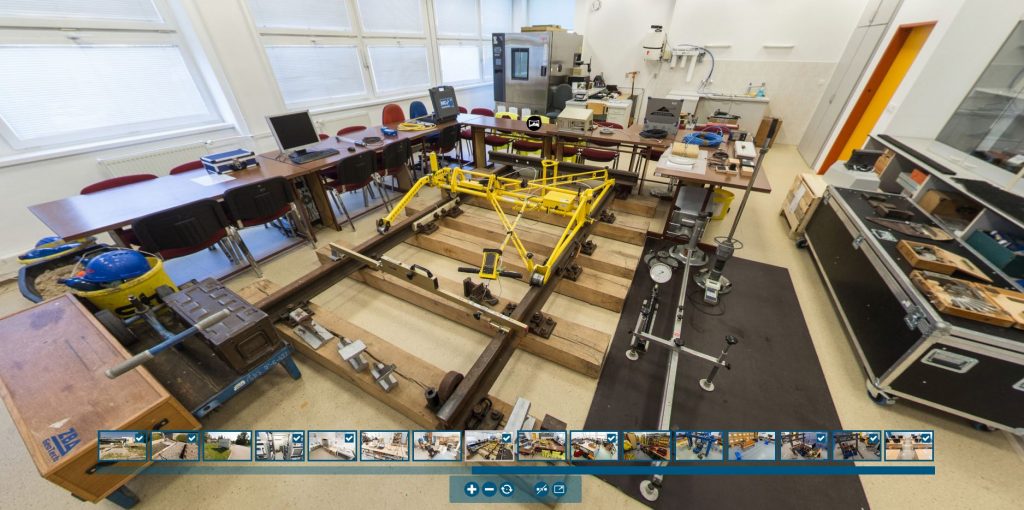 Ako si môžete všimnúť, niektoré zo zariadení sú situované mimo budovy, ide najmä o zariadenia na testovanie kvality ovzdušia a technických vlastností železničnej trate. Časť laboratórií na našej fakulte je súčasťou akreditovaného skúšobného laboratória, oprávneného vykonávať certifikované merania a skúšky, napríklad zaťažovacie skúšky stavebných konštrukcií a mostov, alebo stanovenie pevnosti betónu.